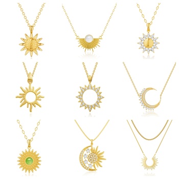 เครื่องประดับชุบทอง18K ไม่เสื่อมเสียแบบมินิมอลลิสต์925สองชั้นสร้อยคอดอกทานตะวันเพทายสีเงิน